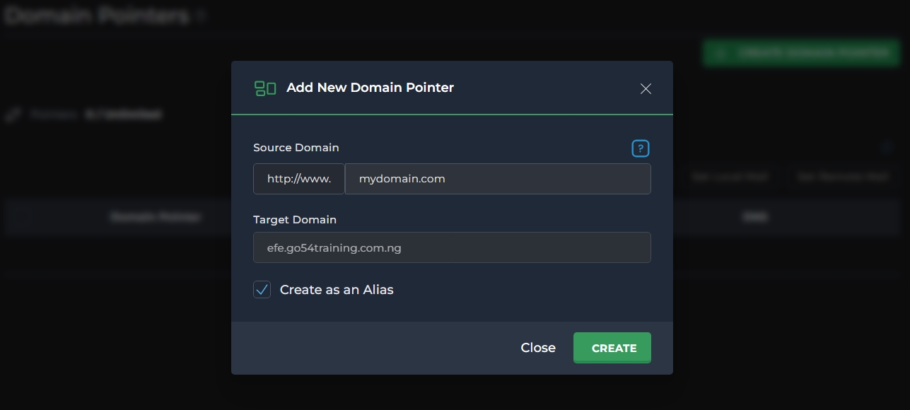 For example: If you set up test.example.com as a pointer to example.com, both domains will display the same website content.